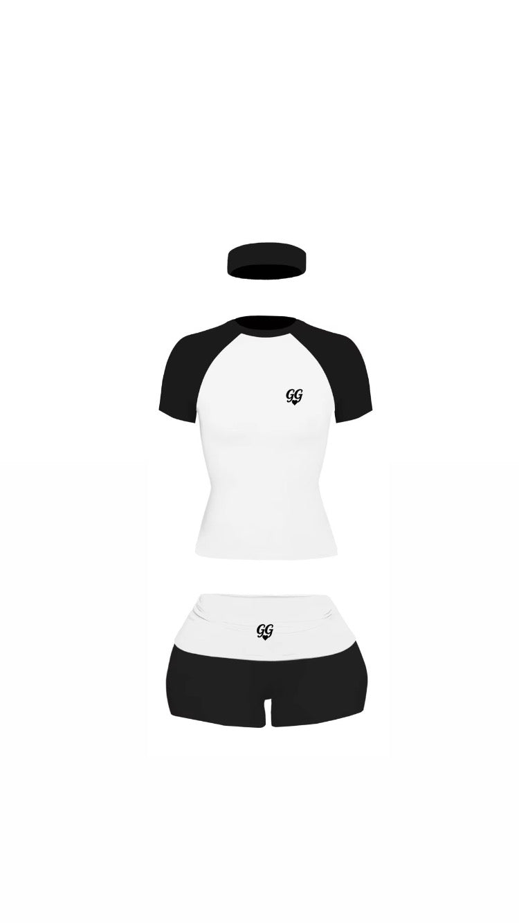 Classic black and white with a sporty twist — this set gives off effortless “cool girl” energy. Whether it’s a workout or a coffee run, stay chic and comfortable all day. Includes a sleek black headband to keep your hair in check